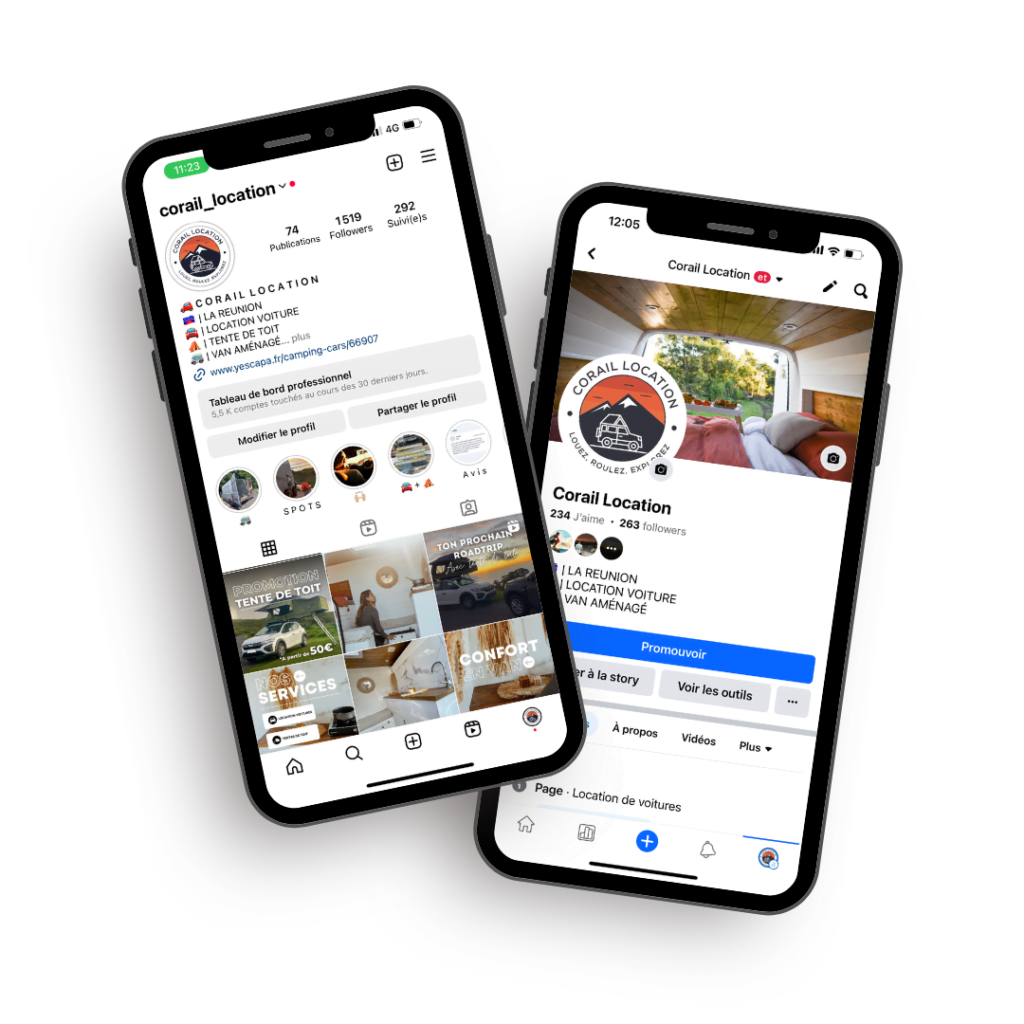 Rejoignez-nous sur Instagram et Facebook pour plonger dans l'univers de Corail Location. Soyez les premiers à découvrir les spots de bivouac méconnus. Suivez-nous pour découvrir vos futurs moments d’aventure et les promotions exclusives. Ensemble, partageons l'amour de la route et des voyages !